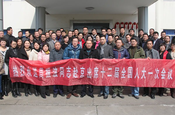 王季丁執(zhí)行副總裁,李丹總裁等領(lǐng)導(dǎo)代表德力西集團(tuán)和全體員工,熱烈歡送周振波同志赴京出席全國(guó)人代會(huì)。希望他不辜負(fù)億萬(wàn)農(nóng)民工的期望,積極參政議政,認(rèn)真履行全國(guó)人大代表職責(zé),與全體代表一起共商國(guó)是,并把農(nóng)民工兄弟的意見(jiàn)建議帶到全國(guó)人代會(huì)上去。希望德力西全體員工向周振波同志學(xué)習(xí),以盡心盡責(zé)做好本職工作的實(shí)際行動(dòng)支持周振波同志開(kāi)好全國(guó)人代會(huì),并在德力西興起一個(gè)學(xué)先進(jìn)、趕先進(jìn)、爭(zhēng)先進(jìn)的熱潮。